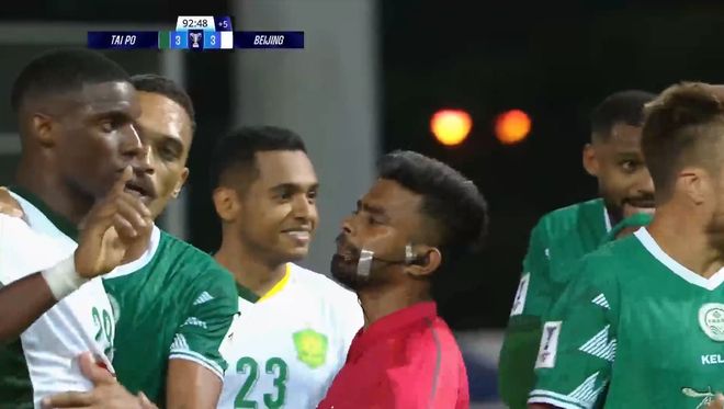 下半場北京國安加強進攻在第53和第83分鐘也分別各進1球,一舉逆轉(zhuǎn)場上比分,把比分從2比1改寫為2比3??完狀I(lǐng)先了!被反超后,大埔隊急了!發(fā)起一波波猛攻,也終于在第90分鐘時再進1球,從而絕平北京國安。